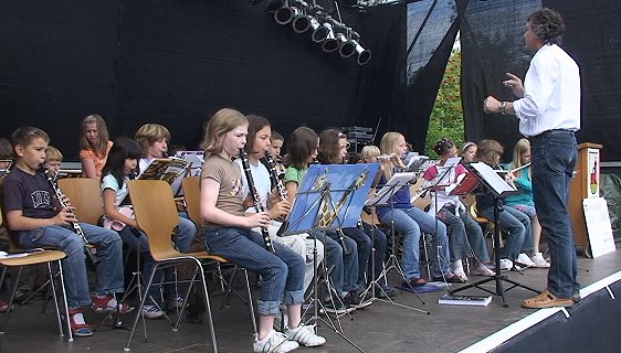 Im Kleinen Odenwald ist was los Die Bläser-AG der Grundschule Bildungswerkstatt Schönbrunn spielte zur Eröffnung der Gewerbe- und Kulturtage. (Foto: Hubert Richter)Mehr Bilder (Klicken zum Vergrößern):