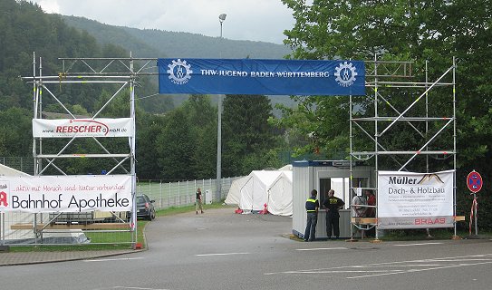 Es war schon eine logistische Meisterleistung, die der THW-Ortsverband Eberbach unter der Leitung seines Ortsbeauftragten Ulrich Schaffer mit seinen vielen Helfern auf die Beine gestellt hatte. Am Samstag wurde auf dem Busparkplatz am Neckarlauer ein Meldekopf eingerichtet, um von hier aus die angereisten Ortsgruppen nach und nach auf den Lagerplatz in die Au zu lotsen. Aufbauleiter und Platzwart Achim Link zeigte den angereisten Gruppen dort dann ihre zugeteilten Lagerplätze, und seine Helfer sorgten anschließend dafür, dass die Fahrzeuge wieder schnell den Lagerplatz verließen. Eine richtige kleine Stadt ist hier entstanden, mit einem Reisebüro, in dem Ausflüge gebucht werden können, der täglich erscheinenden Lagerzeitung „Die Wildsau“, einem kleinen Kiosk, in dem Eis und Süßes gekauft oder Spiele ausgeliehen werden können sowie einer Feldküche, die für die Verpflegung der Teilnehmer verantwortlich ist.
