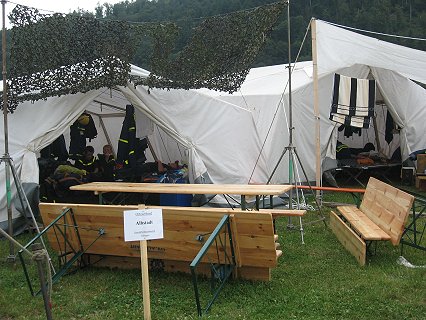 Es war schon eine logistische Meisterleistung, die der THW-Ortsverband Eberbach unter der Leitung seines Ortsbeauftragten Ulrich Schaffer mit seinen vielen Helfern auf die Beine gestellt hatte. Am Samstag wurde auf dem Busparkplatz am Neckarlauer ein Meldekopf eingerichtet, um von hier aus die angereisten Ortsgruppen nach und nach auf den Lagerplatz in die Au zu lotsen. Aufbauleiter und Platzwart Achim Link zeigte den angereisten Gruppen dort dann ihre zugeteilten Lagerplätze, und seine Helfer sorgten anschließend dafür, dass die Fahrzeuge wieder schnell den Lagerplatz verließen. Eine richtige kleine Stadt ist hier entstanden, mit einem Reisebüro, in dem Ausflüge gebucht werden können, der täglich erscheinenden Lagerzeitung „Die Wildsau“, einem kleinen Kiosk, in dem Eis und Süßes gekauft oder Spiele ausgeliehen werden können sowie einer Feldküche, die für die Verpflegung der Teilnehmer verantwortlich ist.