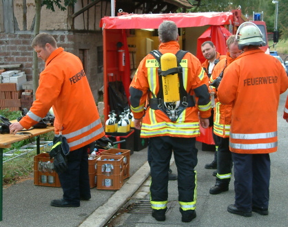 Hoher Sachschaden in der Waldbrunner Straße Presslufttankstelle am Atemschutzcontainer. (Foto: Wörner)Mehr Bilder (Klicken zum Vergrößern):