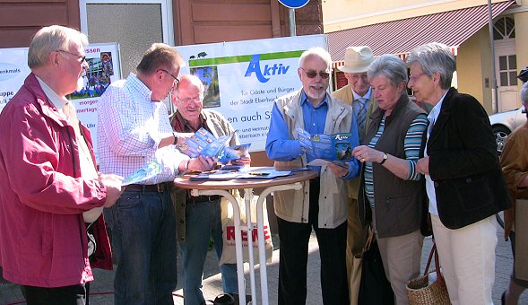 Bei der gestrigen Aktion verteilten die Mitglieder an Interessierte den neuen Flyer "Aktiv für Gäste und Bürger der Stadt Eberbach am Neckar", in dem nicht nur die Arbeit und die Ergebnisse des Vereins beschrieben sind. Er soll die Leser auch zum Mitmachen anregen. Denn nur mit weiteren Mitgliedern könne der Verein weiterhin seine Ziele verwirklichen, so Lipski, der sich freut bereits am 3. Juli 2010 in der Neckaranlage ein Treidler-Denkmal vorstellen zu können.