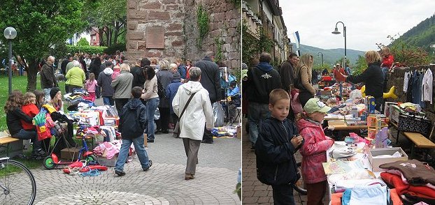 Dunkle Wolken waren schlecht fürs Geschäft (Fotos: Nicole Kolbe)(ko) Bei kühlen Temperaturen und dunklen Wolken am Himmel fand gestern Nachmittag der traditionelle Kinderflohmarkt in und um die Eberbacher Altstadt statt. Doch der erwartete Besucherstrom blieb auf Grund der unsicheren Wetterlage leider aus.