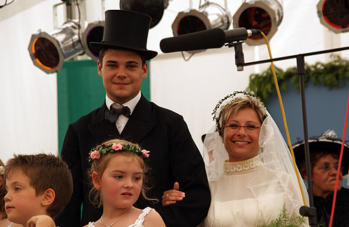 Dorfjubiläum auf dem Winterhauch Corinna Baumgartner und Sebastian Dietz als Brautpaar. (Foto: Jürgen Hofherr)Mehr Bilder (Klicken zum Vergrößern):