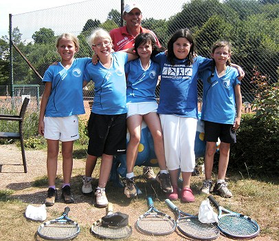 Juniorinnen U10 wurden Gruppensieger in der zweiten Bezirksliga Die erfolgreichen Mädchen des TC Blau-Weiß: Julia Schmitt , Sara Sauermann, Mara Schmitt, Amelie Neuer, Hannah Schumacher mit Trainer Matthias Voigt (v.l.). (Foto: privat)(bro) (sch) Aufhorchen ließ die jüngste Mädchenmannschaft des Eberbacher Tennisclubs. Die Juniorinnen U10 belegten souverän den ersten Tabellenplatz und wurden somit Gruppensieger der zweiten Bezirksliga. In allen fünf Begegnungen blieben die Mädchen, trainiert von Matthias Voigt, Trainer und Breitensportwart des TC BW, ungeschlagen.