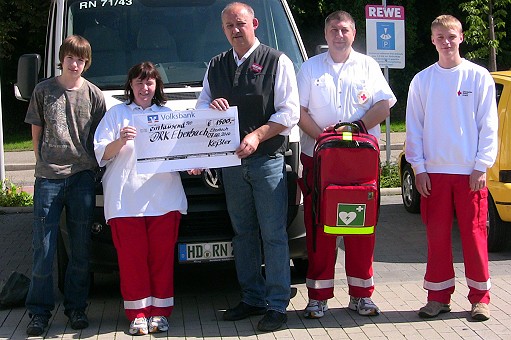 Keßler rundete den Betrag auf und übergab den DRKlern einen symbolischen Scheck in Höhe von 1.500 Euro. Das Geld wurde inzwischen für einen Notfallrucksack ausgegeben. Mit diesem Rucksack, der nun zur Ausstattung des DRK-Bereitschaftbusses in Eberbach gehört, sei man jetzt gut ausgestattet, freuten sich Bereitschaftsleiterin Marion Vesper und ihr Stellvertreter Nikola Ivacevic im Beisein von Sanitätshelfer Sven Mansa und Helfer beim DRK Louis Eiteljörg.