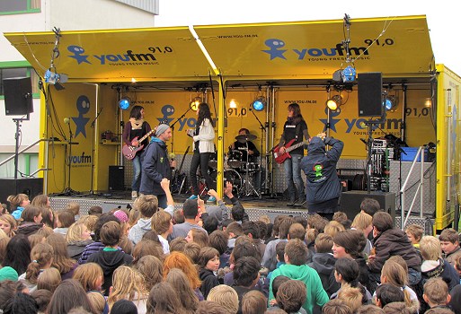 Pausenauftritt übertraf alle Erwartungen (Foto: privat)(bro) (bh) Der Auftritt der Optimisten an der Oberzent-Schule im Rahmen des Wettbewerbs „Schulstar 2010“ des Radiosenders You FM am vergangenen Donnerstag übertraf alles, was man sich je gedacht hatte.