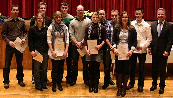 Bei der anschließenden Sportlerehrung wurde Bürgermeister Bernhard Martin von Dieter Jeitner, der zweiten Vorsitzenden des Sportausschusses, Gisela Fleck, sowie Rathausmitarbeiterin Anke Steck unterstützt (Ehrungslisten siehe unten). Allen Ehrungen lagen die sportlichen Erfolge im Zeitraum vom 1. September 2009 bis 31. August 2010 zu Grunde.