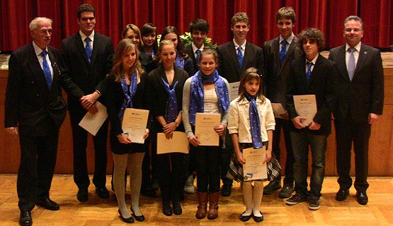 Zweistündiger Ehrungsmarathon in der Stadthalle Die Geehrten der Rudergesellschaft. (Foto: Hubert Richter)Mehr Bilder (Klicken zum Vergrößern):
