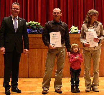 Zweistündiger Ehrungsmarathon in der Stadthalle Christoph Diehl und Angelika Merkel gehören zu den Schnellsten mit dem Schlittenhundegespann. (Foto: Hubert Richter)Mehr Bilder (Klicken zum Vergrößern):