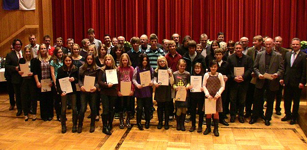 Bei der anschließenden Sportlerehrung wurde Bürgermeister Bernhard Martin von Dieter Jeitner, der zweiten Vorsitzenden des Sportausschusses, Gisela Fleck, sowie Rathausmitarbeiterin Anke Steck unterstützt (Ehrungslisten siehe unten). Allen Ehrungen lagen die sportlichen Erfolge im Zeitraum vom 1. September 2009 bis 31. August 2010 zu Grunde.