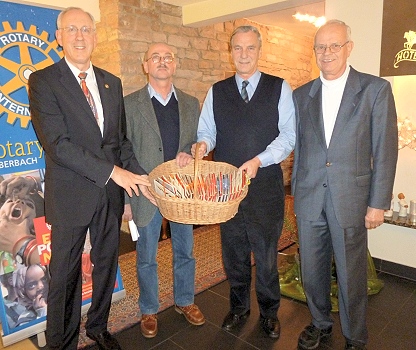 Bei der Übergabe der Gutscheine bedankte sich Günther Ihrig von der AWO und Hans Koch von der Diakonie beim Präsidenten des Rotary Clubs Eberbach, Werner Kley, und bei Dr. Günter Blankenhorn, der in diesem Jahr für die sozialen Projekte des Rotary Clubs federführend ist.