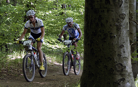 Spitzenfahrer fuhren Spitzenzeiten Der spätere Sieger Daniel Eiermann und Christobal da Silva, der Zweitplatzierte, liefern sich an der Auffahrt zum Katzenbuckel ein spannendes Duell. Am Ende lagen nur hauchdünne neun Sekunden zwischen den Bikern. (Foto: Hofherr)(hof) Über 400 Mountainbiker nutzten gestern die frühsommerlichen Verhältnisse, um sich in verschiedenen Alters- und Leistungsklassen mit internationaler Konkurrenz zu messen. Die weiteste Anreise hatte auch in diesem Jahr der chilenische Nationalfahrer und Olympiastarter Christobal da Silva auf sich genommen. Am Start war auch Vorjahressieger Sebastian Szraucner, der krankheitsbedingt bei der sechsten Auflage des Mosca-Bike-Festivals keine Rolle spielte und die Titelverteidigung vorzeitig aufgeben musste.