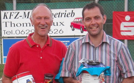 Sieg für Tennisdoppel bei offenem DTB Ranglistenturnier (Foto: privat)(hr) (js) Bei den offenen Neckar-Odenwald-Meisterschaften 2011 in Bödigheim erkämpften sich die Eberbacher Frank Bassing und Josip Varga (Bild v.r.) zum zweiten Mal in Folge den Sieg im Doppel Ü 100.