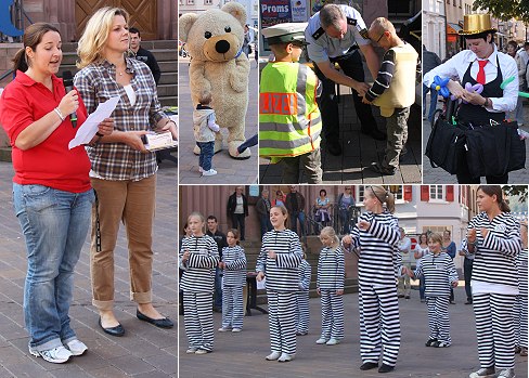 Neuer Markt und Bahnhofstraße gehörten den Kindern Spaß beim Kinderfest. (Fotos:Renate Dengel)(rd) Reges Treiben herrschte heute auf dem Neuen Markt und in der Bahnhofstraße, denn dort wurde von 10 bis 16 Uhr ein großes Kinderfest anlässlich des Weltkindertags am vergangenen Dienstag gefeiert.