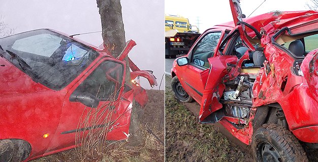 Von der Fahrbahn abgekommen und gegen Baum geschleudert (Fotos: privat)(hr) Infolge Eisglätte ereigneten sich heute Morgen in der Region mehrere Unfälle. Allein dreimal hat es im Zuständigkeitsbereich des Eberbacher Polizeireviers gekracht. Der folgenschwerste Unfall geschah auf der L 595 zwischen Haag und Schönbrunn.