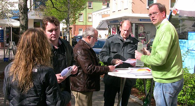 Die CDU verteilte in Eberbach Flugblätter gegen die Polizeireform. (Foto: Claudia Richter)