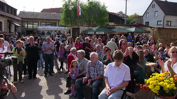 Viele Ortsvereine haben sich auch zusammengetan und einen Gedenkstein zur dauernden Erinnerung an die Jubiläumsfeier gestiftet, der gestern enthüllt wurde (Bild links). Nach einem Festgottesdienst heute Vormittag geht das historische Treiben im Ort in die zweite Runde, bis das Festwochenende gegen Abend allmählich ausklingt.