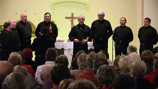 Ein weiterer Höhepunkt des Festwochenendes war gestern Abend das seit langem ausverkaufte Konzert des Schwarzmeer-Kosaken-Chors unter Leitung des früher auch als Schlagersänger bekannten Peter Orloff in der Schönbrunner Kirche. In der Pause sorgte der Kirchengemeinderat für Bewirtung, und im Anschluss an das Konzert zündete Manfred Brückner aus Haag ein Feuerwerk in den sternenklaren Nachthimmel.