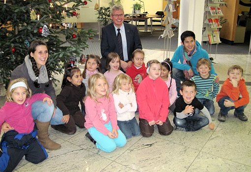 Dieses Jahr schmückte der katholischen Kindergarten St. Elisabeth den Weihnachtsbaum in der Kundenhalle in Eberbach. Die Kindergartenkinder und die Erzieherinnen wurden von Regionaldirektor Karlheinz Emig begrüßt. Mit viel Freude dekorierten die Kinder den Baum mit ihrem selbst gebastelten Christbaumschmuck.