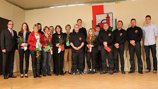 Die geehrten Sportlerinnen und Sportler mit Bürgermeister Jan Frey (l.). (Foto: Hubert Richter)