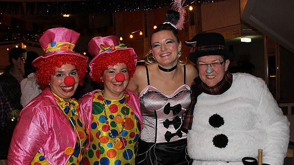 Mit knapp 500 Besuchern war der einzige große Faschingsball in Eberbach gestern bei weitem nicht ausverkauft. Der Förderverein der Freiwilligen Feuerwehr hatte das Event wieder bestens vorbereitet, mehrere Getränkestationen einschließlich der beliebten Bar unter der Bühne eingerichtet und mit "Harry Bo und die Gummibärchen" die bewährte Stimmungsband aus Südhessen engagiert. Vor der Bühne wurde eifrig getanzt, und an den Tischen gab es ausreichend Sitzplätze für die Erholung und Stärkung zwischendurch. So stand dem närrischen Feiern bis in die Morgenstunden nichts im Weg.
