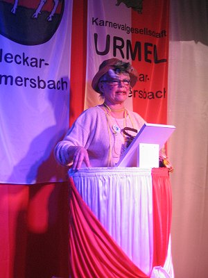 Volles Haus und gute Stimmung bei den Wimmersbacher Narren Heide Bayer als „Petronella Knorzel“. (Foto: Nicole Kolbe)Mehr Bilder (Klicken zum Vergrößern):