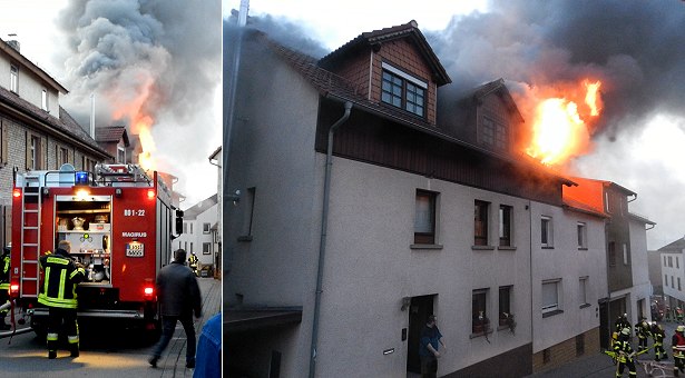 Ein Schwerverletzter und hoher Sachschaden (Fotos: privat)(hr) Zu einem Dachstuhlbrand kam es heute am frühen Abend in Rothenberg. Dabei wurde ein 18-jähriger Hausbewohner lebensgefährlich verletzt.