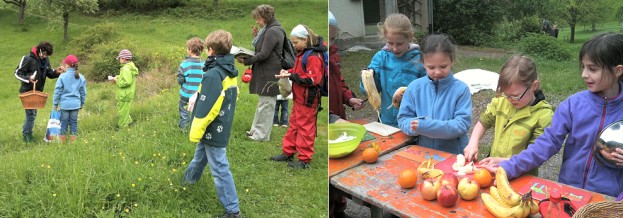 Zunächst putzten die Jungen und Mädchen die gesammelten Brennnesseln, dann schnitten sie sie klein und steckten sie zusammen mit Äpfeln, Orangen, Kiwis, Bananen und Johannisbeeren in einen Mixer, der die Zutaten zu einem gesunden und leckeren Getränk pürierte. Dank der großzügigen Spende von Joachim Braunsberger, Inhaber des Naturkostladens "biobio" in Eberbach, war die Waldbande mit leckeren und zahlreichen Bio-Obstsorten bestens ausgestattet. Mit der Zeit und ein bisschen Übung probierten die Kinder die unterschiedlichsten Brennnessel-Variationen aus. Ein frischer Brennnessel-Tee für zwischendurch durfte natürlich nicht fehlen. Als Krönung kreierte jedes Kind sein eigenes „Brennnessel-Smoothie-Rezept“. Gebunden wird diese Rezeptsammlung der Wettbewerbs-Beitrag für den "Erlebten Frühling", dessen Einsendeschluss der 24. Mai ist.