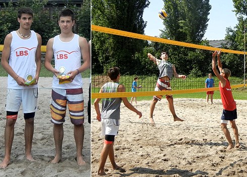 Der Eberbacher Jonas Mechler holt das Triple Links: Jonas Mechler (re.) mit seinem Beach-Partner Clemens Müller nach dem Gewinn der Nordbadischen U18 Beachvolleyball Meisterschaft. Rechts: Der junge Eberbacher beim Netzangriff bei den Nordbadischen U18 Meisterschaften. (Fotos: privat)(bro) (jm) Am letzten Wochenende machte Jonas Mechler mit dem Gewinn der Nordbadischen Beachvolleyball Meisterschaften der Jugendklasse U18 das Triple perfekt. Vorher war er bereits bei den Jugendklassen U17 und U19 mit zwei unterschiedlichen Partnern Nordbadischer Meister geworden.