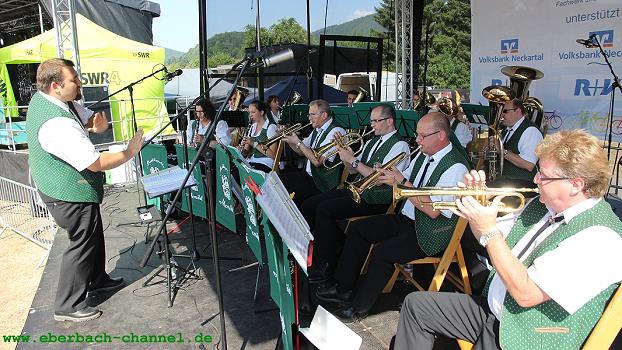 Für die Bewirtung am Nachmittag und Abend hatten sich im Vorfeld viele Eberbacher Vereine zusammengetan um den logistischen Kraftakt gemeinsam zu stemmen, bei geschätzt über 2.000 Gästen am Abend kein leichtes Unterfangen. Bis auf etwas längere Wartezeiten an den Getränkeständen lief aber alles zur Zufriedenheit der Besucher, die teilweise auch mit der eigens für das Event eingesetzten Neckarfähre über den Fluss gekommen waren, denn die Parkplätze in der Au waren begrenzt.