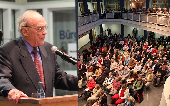 Der Auftaktabend stieß auf sehr großes Interesse. Etliche Zuhörer nahmen auf der Empore im 1. Obergeschoss Platz. Sie erwartete keine leichte Kost. Zwei Stunden dauerte der wort- und detailreiche Vortrag des Historikers und früheren Lehrers am Eberbacher Hohenstaufen-Gymnasium. Und wenn er nicht einiges weggelassen hätte, hätte sein Fundus an Details, Episoden, politischen Einschätzungen und persönlichen Erinnerungen vermutlich auch locker für vier Stunden gereicht.