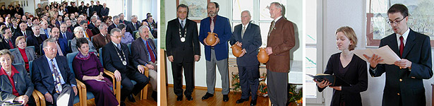 Rückblicke und Vorausschau beim Waldbrunner Neujahrsempfang Viele Gäste waren beim Neujahrsempfang, als auch Ortsvorsteher Dr. Karl Hellmuth und die Gemeinderäte Guido Schäfer und Bernward Stiller offiziell verabschiedet wurden. Für musikalische Umrahmung sorgten u.a. Corina Schulz und Jens Holzinger. (Fotos: Baumgartner)(tb) Nachdem man in Waldbrunn im letzten Jahr den Neujahrsempfang aus den bekannten Gründen ausfallen ließ, fand dieser in diesem Jahr wieder traditionsgemäß am Dreikönigstag im Waldbrunner Rathaus im Ortsteil Strümpfelbrunn statt. Bürgermeister Klaus Schölch freute sich bei der Begrüßung, dass eine große Anzahl von Gästen, unter Ihnen MdL Peter Hauk und MdL Gerd Teßmer der Einladung nachgekommen sind. Während seiner Rede hielt Schölch Rückblick auf das vergangene Jahr. Die Neugestaltung der Schweizer Straße in Mülben oder der Mineralogische Lehrpfad im Steinbruch des Katzenbuckels seien gut gelungen. Innerhalb der nächsten drei Jahre sollen der Bau der Wasseraufbereitungsanlage im Bereich Heumatten, die Verbindung (Leitungsbau) von der Heumatten zum Wasserhochbehälter „Hohfeld“ und der Bau des Hochbehälters „Hohfeld“ fertiggestellt werden. Neu hinzu komme der Ausbau der Hochdruckzone „Strümpfelbrunn“ mit Wegebau in der Gartenstraße und die neue Fallleitung vom Hochbehälter in den Ortsteil Schollbrunn. Insgesamt werde man nach Fertigstellung rund 12 – 14 Millionen DM in die neue Wasserversorgung investiert haben. Weiterhin habe man die Fertigstellung der Erschließung des 1. Bauabschnittes im Gewerbe– und Wohngebiet „Sigmundsgut“ im Ortsteil Oberdielbach im Auge. Damit verbunden seien umfangreiche Baumaßnahmen in und um den Holderbach, die Hochwassersituation soll durch eine Renaturierung erheblich verbessert werden. Mit der Erschließung des Gewerbegebietes „Sigmundsgut“ und dem Erstellen des Bebauungsplanes für die Fa. Mosca habe man 2001 die Voraussetzungen geschaffen, hoffnungsvoll in die Zukunft blicken zu können. Auch geht man davon aus, 2002 endgültig die Voraussetzung für die Erteilung des Prädikats „Heilklimatischer Kurort“ schaffen zu können.