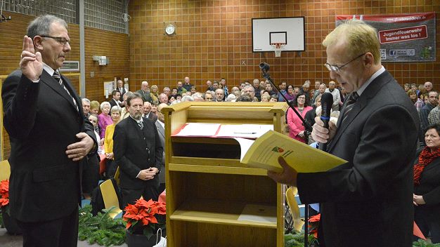 Egon Scheuermann steht der Gemeinde weitere sechs Jahre vor (Foto: Barbara Gusz)(bg) In Sensbachtal wurde am Freitagabend, 20. Dezember, der wiedergewählte Bürgermeister Egon Scheuermann offiziell in seine zweite Amtsperiode eingeführt.