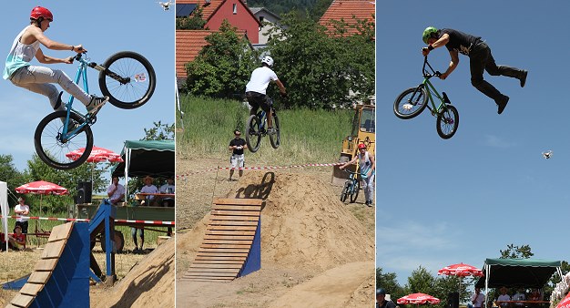 Zehn Starter aus Eberbach, Schönbrunn und der Region bis Mannheim und Landau zeigten ihr Können auf zwei Rädern und in der Luft. Den Zuschauern wurden teils spektakuläre Tricks und Sprünge über die Erd- und Holzrampen geboten. Nach Übungsläufen ab 11.30 Uhr zeigten die Biker ab 13 Uhr eine Stunde lang ihre besten Tricks. Danach folgten noch zwei Wettbewerbsläufe.