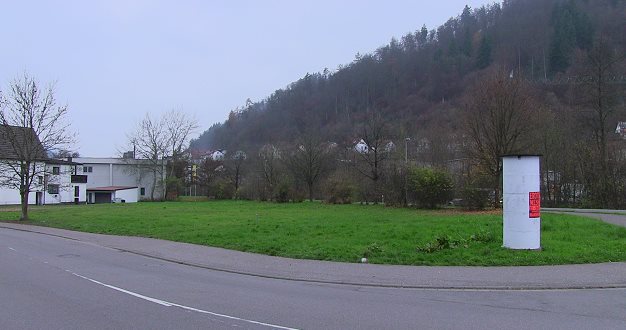 Nochmals Käufer für mögliches Tankstellenareal gesucht (Foto: Hubert Richter)(hr) Für die künftige Nutzung des unbebauten städtischen Grundstücks an der Wilhelm-Blos-Straße (Einmündung Neuer Weg, unser Bild) unternahm der Eberbacher Gemeinderat jetzt einen neuen Anlauf. Das Areal wird wieder öffentlich zum Verkauf ausgeschrieben.