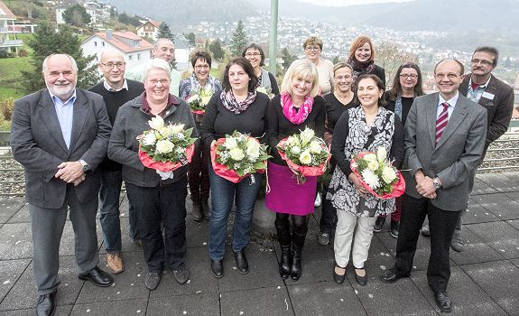 Familiäre Atmosphäre wird von allen geschätzt „Familienfoto“ auf der Dachterrasse der GRN-Klinik Eberbach (v. l. n. r.): Eckhard Jakschewski, Norbert Moser, Angelika Herwig, Rolf Poxleitner, Claudia Mechler, Ute Beck, Jutta Ernst, Martina Bussemer, Ursula Ebersohl, Marion Münch, Susanne Simon, Nurhayat Yavasca, Marlene Vogel, Martin Hildenbrand, Michael Spiegelberg (Foto: GRN / Elvira Mächtlen).(bro) (stm) „Steht ein Jubiläum an, ist ganz klar, das feiert man." Mit diesen einleitenden Worten hatte Martin Hildenbrand, Leiter der GRN-Klinik Eberbach, acht Mitarbeiterinnen und Mitarbeiter eingeladen, die 2014 ihr 25-jähriges Dienstjubiläum begehen konnten, eine weitere Kollegin, die seit 40 Jahren im Öffentlichen Dienst arbeitet, und ein Kollege, der im zu Ende gehenden Jahr in den Ruhestand getreten ist. Sie alle waren am 27. November der Einladung gefolgt und verbrachten gemeinsam mit Klinikleiter Hildenbrand, Pflegedienstleiter Michael Spiegelberg, Hauswirtschaftsleiterin Marion Münch sowie ihren jeweiligen unmittelbaren Vorgesetzten einen gemütlichen Nachmittag an reich gedeckter Kaffeetafel.