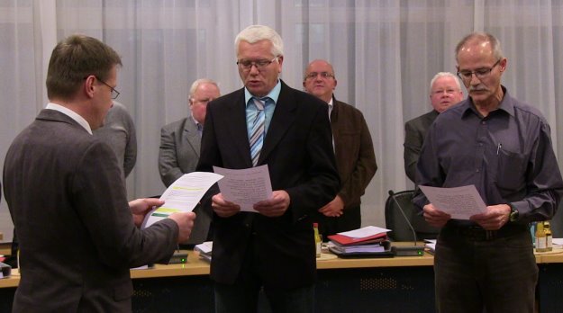 Bürgermeister widerspricht Ratsbeschluss Bürgermeister Peter Reichert bei der Verpflichtung der beiden neuen Ortsvorsteher Wolfgang Raule und Peter Schwarz (v.l.). (Foto: Hubert Richter)(hr) Einstimmig wurde in der letzten öffentlichen Sitzung des Eberbacher Gemeinderats am 27. November Peter Schwarz zum neuen Ortsvorsteher des Ortsteils Lindach gewählt und anschließend verpflichtet. Stellvertreter sind Adelheid Schüßler und Achim Helm. Die Verpflichtung von Wolfgang Raule zum Ortsvorsteher von Pleutersbach, der in der letzten Gemeinderatssitzung gewählt wurde aber nicht anwesend war, wurde nachgeholt.