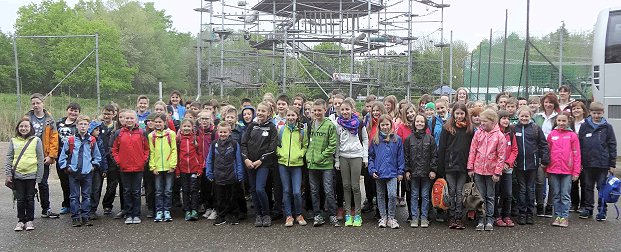 In schwindelnder Höhe (Foto: privat)(bro) (st) Konzentration, Gleichgewichtssinn und Mut waren beim letzten VR-Primax-Ausflug für Zehn- bis 13-Jährige gefragt. Am Samstag, 25. April, bezwangen über 70 Jugendliche den Hochseilgarten in Wiesloch.