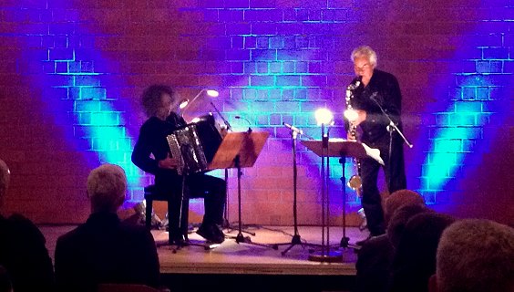 Deutsch-französisches Duo begeisterte das Publikum (Foto: StvE)(hr) Mit Michael Riessler und Jean-Louis Matinier gaben sich am vergangenen Samstagabend zwei hochklassiger Jazzmusiker ein Stelldichein in Eberbach. Das Publikum im evangelischen Gemeindehaus erlebte ein Jazzkonzert der Extraklasse.