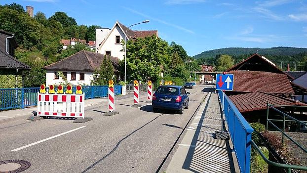Wieder freie Fahrt ins Ulfenbachtal (Foto: Thomas Wilken)(tom) Daumen hoch vom Brückenprüfer: Die Vollsperrung in der Langenthaler Straße wurde gestern Nachmittag aufgehoben.
