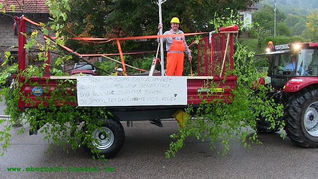 Mehrere Vereine und Gruppen sorgten mit verschiedenen Ortsthemen beim Umzug durch das Dorf für Stimmung und gute Laune bei den Zuschauern (siehe Bilder). Angeführt von der Musikkapelle Allemühl, ging es zum Hof von Manfred Heiß an der Ortsdurchfahrt. Dort verlas Kerwepfarrer Ralph Schweizer seine Predigt (Bild rechts), die wieder gespickt war mit Anekdoten aus dem Ortsgeschehen.