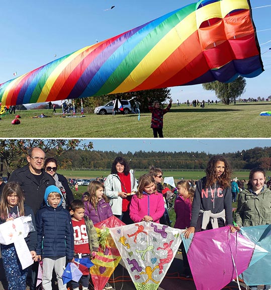 Da nicht nur die Sonne mitspielte, sondern auch der Wind seiner zugedachten Rolle gerecht wurde, waren nicht nur unzählige bunte, teilweise selbst gebastelte Drachen am strahlend blauen Himmel zu sehen, auch von Profis gesteuerte Großdrachen tanzten im Wind.