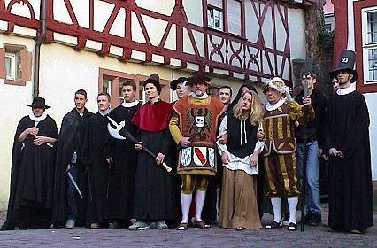 Tatsächlich fand der Prozess am 17.April 1637 vor dem Rathaus am Alten Markt statt. Herausgefunden hat das Hans Klinge bei seinen heimatgeschichtlichen Forschungen. Der Anwohner des Breitensteins war schon geraume Zeit auf der Suche nach dem Standort des Eberbacher Galgens. Am Rand des Breitensteins gab es von Alters her die "Galgenwiese" und die "Galgenquelle". Hans Klinge stöberte im Stadtarchiv und im General-Landesarchiv in Karlsruhe. Das Ergebnis seiner Forschungen: Er ist sich zu mindestens 95% sicher, den Standort des Eberbacher Galgens unterhalb des Breitensteins gefunden zu haben, und ganz nebenbei hat er Unterlagen zu über dreißig Gerichtsprozessen in Eberbach gesichtet. Einer davon ist der Fall der Sünderin Irma, der jetzt szenisch wieder aufgerollt wird. Der Arbeitskreis wird bei dem Projekt unterstützt von der Theater-AG des Hohenstaufen-Gymnasiums unter Leitung von Eberhard Höhn, Mitgliedern des Fanfarenzugs und der KG Kuckuck, dem Spinnzirkel Eberbach und dem Zimmergeschäft Friedrich Müller. Die wissenschaftliche Beratung hat Stadtarchivar Dr.Rüdiger Lenz übernommen. Ob es der Magd Irma letztendlich tatsächlich an den Kragen geht, will der Arbeitskreis noch nicht verraten - es soll spannend bleiben.