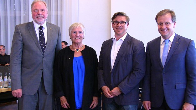Zwei langjährige Ratsmitglieder verabschiedet - Markus Scheurich verpflichtet V.l. Dietrich Müller, Christa Wernz, Markus Scheurich und Bürgermeister Peter Reichert. (Foto: Hubert Richter)(hr) In der heutigen Sitzung des Eberbacher Gemeinderats wurden zwei langjährige Ratsmitglieder verabschiedet und ein neuer Stadtrat verpflichtet.