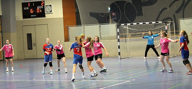 Die SGH-Mädchen gingen mit dem Bewusstsein in Spiel, einen starken Gegner in heimischer Halle schlagen zu müssen. In den ersten 20 Minuten zeigten beide Teams wenig Schwächen und boten eine Partie auf Augenhöhe. Danach gab es einen Bruch im SGH-Spiel. Innerhalb von fünf Minuten verspielten die SGH-Handballerinnen die hart erkämpfte Drei-Tore-Führung durch Fehlpässe und Fehlwürfe. Mit 13:12 wechselte man die Seiten.