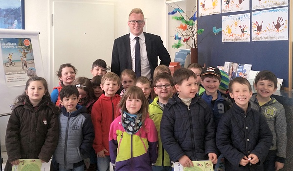 Zum Abschied bedankten sich die Kinder für die Geschenke und die Führung und das Geschäftsstellenteam für die schönen Kunstwerke, die noch einige Zeit in der Bank bewundert werden können.
