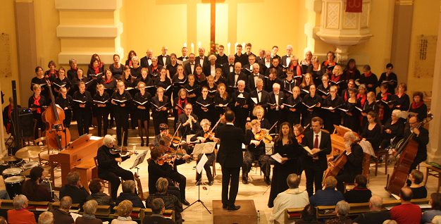 Ein glanz- und gehaltvoller Festgottesdienst  (Foto: privat)(bro) (khm) Zum kirchlichen Abschluss der vielfältigen Veranstaltungen und Feierlichkeiten zum Reformationsgedenken 1517-2017 fand am vergangenen Dienstag in der Eberbacher Michaelskirche ein beeindruckender abendlicher Festgottesdienst statt - geleitet musikalisch von KMD Achim Plagge und von Pfarrer Gero Albert liturgisch, und zwar durchaus im Wortsinn von Liturgie - Dienst (gr. 'ergon') fürs (Gemeinde)volk (gr. làos), indem er seine Predigt sachkundig mit einer Betrachtung der großen Bachkantate "Ein feste Burg ist unser Gott" BWV 80 verband.