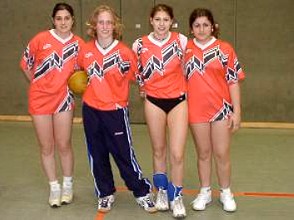 TVE-Prellballerinnen Deutsche Jugendmeister 2002 Die siegreiche weibliche Jugend: (v.l.) Cigdem Cengiz, Daniela Groß, Anna Vangone, Diana Celikel. (Foto:privat)