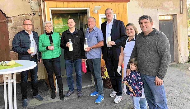 24 Stunden, sieben Tage die Woche gekühlte Bio-Rohmilch Die Familie Danzeisen begrüßte zur Einweihung Bürgermeister Jan Frey und die Gemeinderäte Karin Koch, Rolf Heckmann und Jürgen Dinkeldein sowie den Landtagsabgeordneten Dr. Albrecht Schütte (CDU). (Foto: Amtsblatt Schönbrunn)(bro) (abl) Am Samstag, 6. Oktober, wurde ein Milchautomat auf dem Bauernhof von Phillip Danzeisen in der Häusserstraße 18 in Moosbrunn eingeweiht.