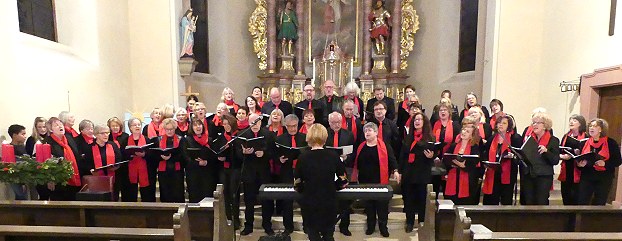 Mit dem anrührenden Sopransolo im „Ave Glöcklein" von Jule Hock und der bemerkenswerten gesanglichen Darbietung von Corinna Watiers mit „Priere Maria mater graciae“ hatte man die Wertschätzung des Publikums schon weitgehend erreicht. Auch die beiden Chormitglieder Susanne Walz-Beigel mit „Beten wir für Frieden“ und Paul Danquart mit „Weihnachten/Wunder der heiligen Nacht“ beeindruckten die Zuhörer wieder mit ihren Eigenkompositionen.